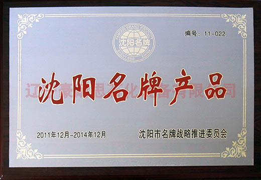 沈阳名牌产品证书