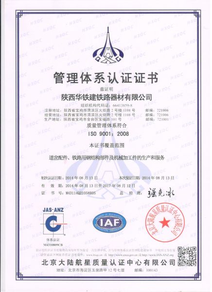 陕西华铁建铁路器材有限公司,位于渭水之滨、炎帝故里、青铜器之乡——宝鸡。这里是西北工业重镇,这里拥有全国最大的铁路桥梁,铁路道岔,铁路行车配件,铁路电器化等国家重点生产线,陇海、宝中、宝成铁路在这里交汇。这些有利条件为我公司的发展提供了强大的支持。   公司注册资金1520万元,下属华铁建电子商务公司注册资金300万元、华铁建工程公司注册资金200万元。占地3000余平方米,建筑面积13000平方米,拥有固定资产800万元,年销售额达5000余万元。本公司产品主要服务于铁路、石油、煤矿、化工等数十个行业,产品畅销全国。   公司依托西北,面向全国,着眼国际市场,积极引进高级专业人才,拓展技术领域,提升产品科技含量,以良好的信誉,先进的设备,严谨的生产工艺为广大新老用户提供质优价廉的各类标准件及各种疑难件、机加件...... [ 查看详情 ]